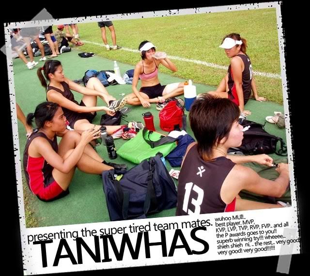 ohhh and i know i know my fitnesssss super sucks, cuz yesterday game i almost died. sorry sorry hor. *guilty* MUI!! your stamina waloweehhh so goooodddd, u drink horse urine isssit, run so fast. hohohohoh.. anyway, superbbb tryyy!!! wuhooooo =( who want to train fitness together gether!? we run from jurong to pasir ris to johor and some say batam. on bohhhhhh????!!!!!!!